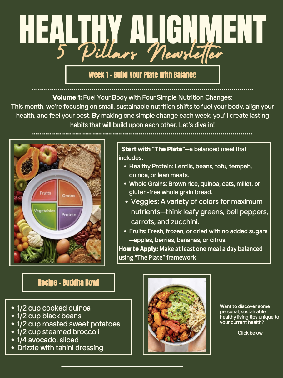 This month, we’re focusing on small, sustainable nutrition shifts to fuel your body, align your health, and feel your best. By making one simple change each week, you’ll create lasting habits that will build upon each other. Let’s dive in!